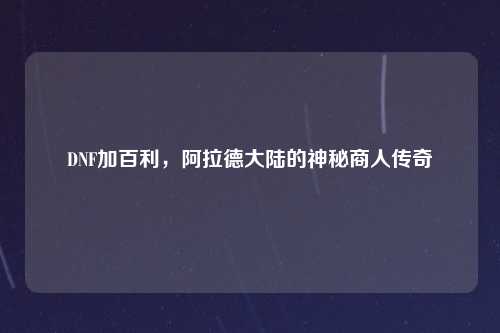 加百利,这位阿拉德大陆上的神秘商人,用他的独特魅力,吸引着无数玩家的目光,他的故事,将永远在阿拉德大陆的传说中流传下去,成为玩家们心中一段难以磨灭的记忆。